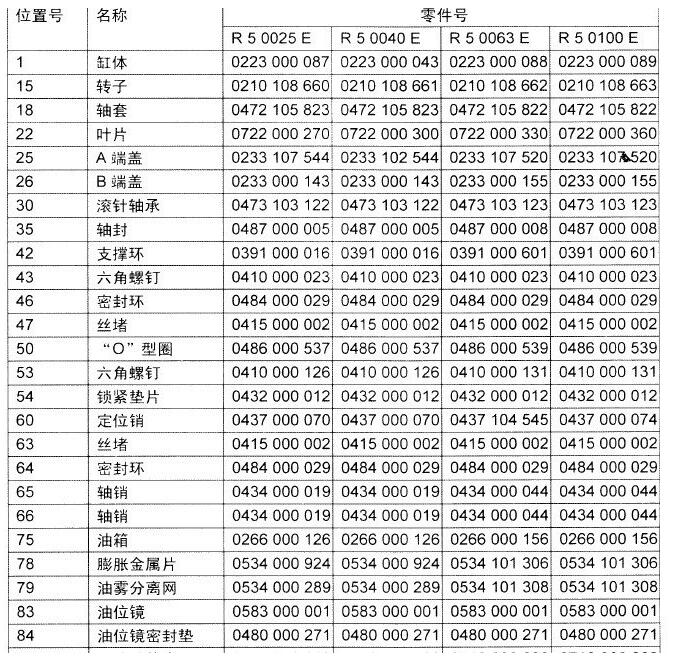 普旭真空泵分解圖RA系列位置號25-40-63-100